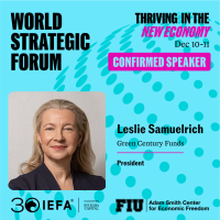 Green Century Funds President Leslie Samuelrich will be attending the World Strategic Forum as a speaker on Tuesday, Dec. 10 in Miami. She will be speaking at the panel, Thriving in the New Economy.