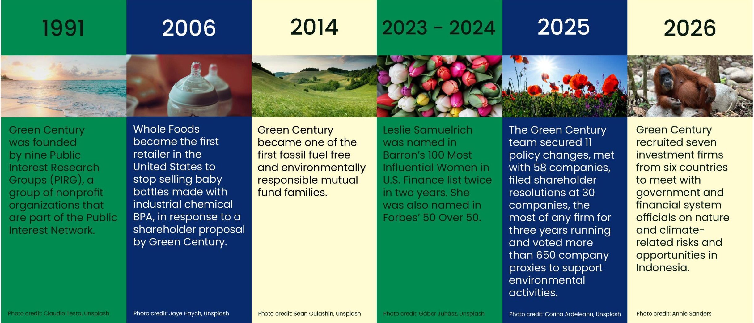 Starting from Green Century’s inception in 1991, it has grown to three mutual funds, made remarkable achievements in shareholder advocacy, and has supported its nonprofit owners and key partners.